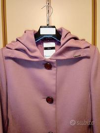 Cappotto da donna in lana e cashmere color malva con colletto plissettato