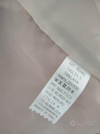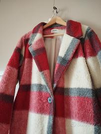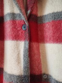 Cappotto di lana a quadri, rosso e panna, foderato, tasche interne. Taglia U. Vestibilità taglia 46/48