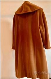 Cappotto di “Marina Rinaldi” Rever sciallato grande Taglia 25… “conformata” Corrispondente a taglia 54 100% lana Color cammello scuro Modello senza bottoni