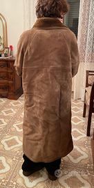 Vendo cappotto lungo in montone vero, stile shearling, con collo e polsini in pelliccia, taglio classico e vestibilità comoda.