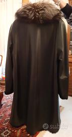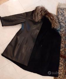 Vendo cappotto di pelle nero con imbottitura di eco pelliccia interna e collo di volpe tg M
