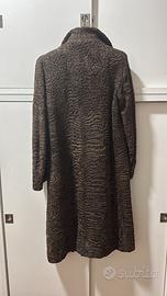 Cappotto di pelliccia di persiano marrone scuro. La pelliccia di persiano, nota ancge come astrakan, è rinomata per la sua particolare lucentezza e la caratteristica arricciatura a piccoli boccoli oltre ad essere apprezzata per la sua resistenza.