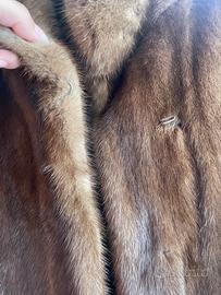 Pelliccia lunga in visone. Presenta tasche e chiusura con clip. Inoltre presenta i polsini alle maniche.