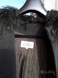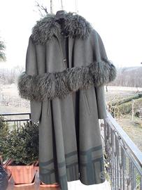 verde loden 80%lana 20% alpaca con mantella staccabile orlata di morbida pelliccia in tinta. fodera trapuntata, firmato De Paoli, ampio di grande vestibilità
