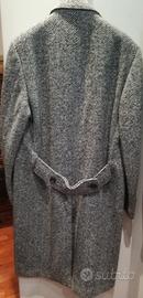 Cappotto di sartoria, colore grigio, motivo spinato, taglia 54, pura lana vergine, foderato, con martingala dietro. Ha 3 bottoni doppio petto.