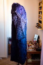 Cappotto di seta pelliccia ricamata volpe tinta in blu viola oversize comprato da un'artigiana/produttrice di pellicce in Russia ad inizio anno. Indossata una volta per qualche foto in casa. Assolutamente nuova. Con sacca per riporla. Chi vuole la foto dell'acquisto via etsy è disponibile in privato.