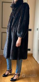 Vendo per inutilizzo cappotto di vera pelliccia in visone nero con riflessi sul marrone scuro.