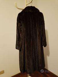 Cappotto di visone bruno scuro lucido, lavorato a pelli intere da laboratorio artigianale di Torino negli anni 80. Chiusura interna a tre gancetti con occhielli. Taglia 44 - Altezza cm. 110 . Condizioni ottime essendo stata indossata in pochissime occasioni e conservata con la massima cura in custodia di tessuto. Ottimo anche per ricavare bellissime pelli per nuovi capi. Visionabile e ritirabile a Torino in zona c.so Traiano.