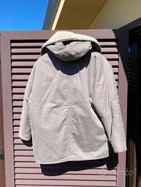 Giaccone “over” doppio petto con cappuccio e fodera termica. 1 tasca interna e due tasche esterne. Taglia XXS / IT 36 / EU 32 78% cotone 22% nylon