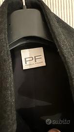 Cappotto elegante Paola Frani grigio scuro, linea femminile e raffinata. Modello con cintura in pelle in vita e spalline leggermente imbottite, che valorizzano la silhouette.
