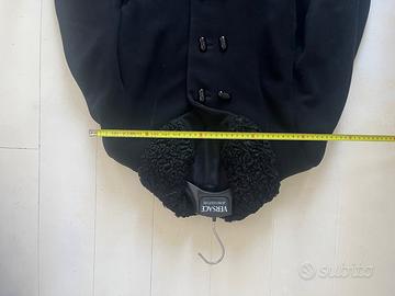 Cappotto in lana con bottoni in bachelite anni 60 in buone condizioni. Da cucire fodera manica dx e parte del collo in pelo astrakan.