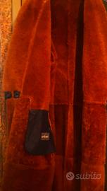 Cappotto donna anni '80 montone rovesciato, colore esterno nero, colore interno ocra bruciata, taglia 46/48, altezza cm 130, fatturazione Conbipel.