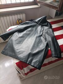 Cappotto imbottito da donna in similpelle, colore nero, con cappuccio con pelo, in ottime condizioni.