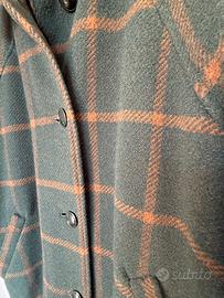 Elegante cappotto sartoriale in lana. - Fantasia a quadri. - Colore base verde con quadri arancio. - Modello ampio e comodo con maniche raglan.