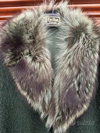 Cappotto donna vintage. Cappotto in lana con collo di volpe. Realizzato da sarta italiana negli anni ‘70. Colore verde. Taglia 46-48.