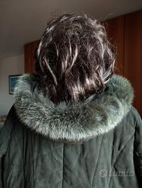 Cappotto o parka invernale lungo da donna, interamente foderato, di colore verde scuro con cappuccio bordato di pelliccia in ottime condizioni come potete vedere dalle foto allegate. Taglia 54 italiana, vero vintage.