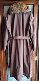 cappotto donna impermeabile Mabrun con pelliccia e cintura, tg. 44 lunghezza 115 cm. Colore marrone chiaro. Come nuovo, niente difetti. Qualità alta.