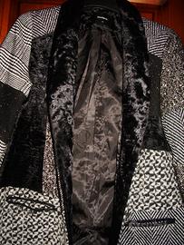Come da foto allegate, il cappotto DESIGUAL è usato e si trova in eccellenti condizioni estetiche ed uso - Tg.44 - vestibilità comoda - Ha il collo di velluto a scialle - come da foto allegate, il capo ha fantasia scozzese, spinato, e velluto - Due tasche anteriori con bordino di velluto nero - chiusura con 2 bottoni rivestiti dallo stesso tessuto - polsini liberi - interno fodera viscosa esterno lana + velluto.