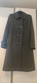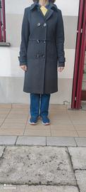 cappotto lungo elegante donna grigio antracite, con bottoni e martingala posteriore, misto lana-cachemire-viscosa, taglia 42, in ottime condizioni.