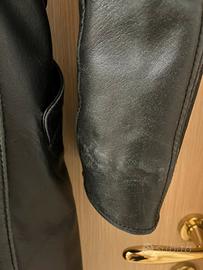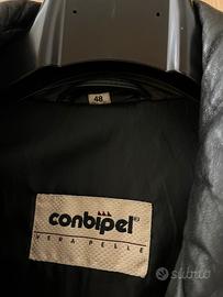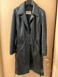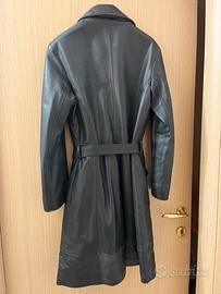 Cappotto da donna in pelle nera Conbipel taglia 48 (ma veste molto stretto). Qualche leggero segno di usura sulle maniche. Consegna solo di persona.