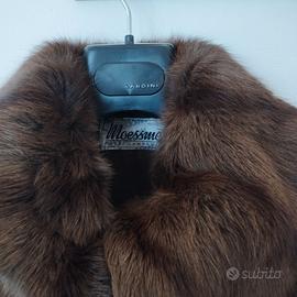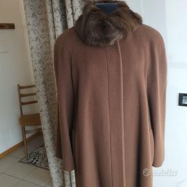 Cappotto donna in pura lana vergine della ditta Moessmer con colletto alto in pelliccia. Maniche raglan con leggera imbottitura, taglia 44/46