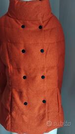 Modello doppiopetto con collo alto, ideale per l’inverno.