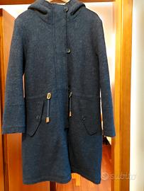 Vendo cappotto donna 100 % lana vergine. Usato poco. Modello con zip, cappuccio , due tasche e cintura con coulisse. Misura 48 italiana.