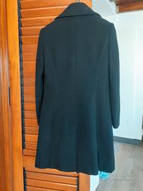 Cappotto da donna nero taglia 44 in pura lana vergine. Modello avvitato con due tasche e spacco dietro