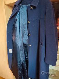 cappotto donna colore blu elettrico, foderato, due tasche, spacco sul retro.