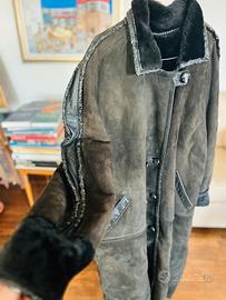 Elegante cappotto Vero Montone in pelle Nero, di fattura artigianale, con rifiniture lucide (effetto pitone) e manicotti in stile per un look glamour che può abbinarsi sia ad un abbigliamento casual che per le occasioni speciali. Fodera interna in pelliccia di Montone. Chiusura con bottoni di design. Tasche Frontali. Misure: lunghezza dal Bottone centrale 107 cm - dal bavero 120 cm - Maniche: 66cm cada una - Larghezza spalle 40cm - Vestibilità Medium / Large.