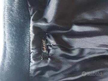 In tessuto 50% lana e 50% poliestere, fodera 60% acetato e 40% viscosa, di colore nero, con design a collo alto e chiusura frontale con bottoni.