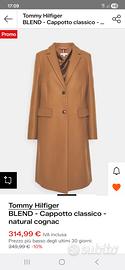 Cappotto donna marca Tommy Hilfiger, color cognac, taglia 44 (EU38). 70% lana. Vendo per taglia errata per me, usato solamente una sera. Ho ancora etichetta, confezione e bottone di ricambio. Il prezzo di vendita originale è oltre 315 Euro, lo vendo a 199 Eur.