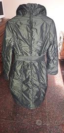 Cappotto donna nuovo tessuto tecnico tinta unita verde Marca "Corte dei Gonzaga" Taglia 44 cintura, monopetto, chiusura con bottoni clip, collo trapuntato, multitasche, maniche lunghe, interno imbottito Lo vendo perché mi è stato regalato ma non è della mia misura.