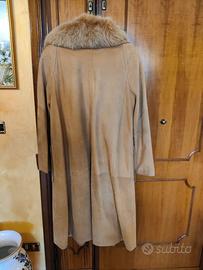 Cappotto donna in pelle scamosciata color miele con collo vera volpe taglia M Il cappotto presenta una piccola macchia scura nella parte anteriore