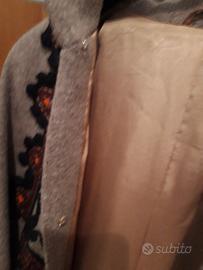 Vendo cappotto donna di stoffa color sabbia, con motivo etno, lungo, senza bottoni, con ganci, misura 44, quasi nuovo.