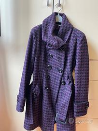 Cappotto donna pied de poule. Marca Miss Sixty. Colore viola e nero. Taglia M. Condizioni ottime. Lunghezza cm82 - spalle cm40
