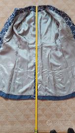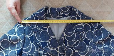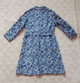 Cappotto Donna Vintage - Fantasia a Cerchi Fine Anni '60 in Jeans - Taglia M - Difetto in un Bottone sprovvisto di Cerchietto Decorativo - Consegna a Mano.