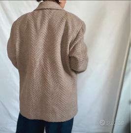 Cappotto monopetto da donna, caratterizzato da un motivo a spina di pesce e una silhouette oversize. Il cappotto ha un ampio collo a revers, due bottoni visibili sul davanti e tasche applicate con patta.
