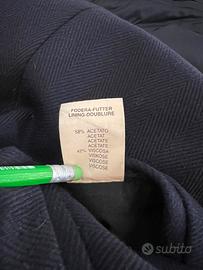 Autentico cappotto Fay Double da uomo, prodotto in Italia. Cappotto doppio strato elegante e pratico, composto da un esterno in lana dalla vestibilità slim e sartoriale abbinato a un gilet interno imbottito e rimovibile con cappuccio, perfetto per il look a strati autunnale e invernale. Puoi indossare il cappotto esterno da solo, il gilet interno da solo o entrambi insieme per un maggiore calore. Indossato solo poche volte, si mantiene in ottime condizioni. Pulito e ben tenuto, senza difetti di rilievo. ⸻ Dettagli • Marchio: Fay • Modello: Cappotto Doppio • Taglia: M (Slim fit) • Prodotto in Italia Composizione Cappotto Esterno: • 75% Lana Vergine • 25% Poliammide Composizione Gilet Interno: • 100% Poliammide ⸻ Caratteristiche • Gilet interno imbottito staccabile con cappuccio • Silhouette classica sartoriale • Chiusura frontale con bottoni • Tasche funzionali • Elegante colore blu navy scuro • Può essere indossato come 3 in 1 (cappotto / gilet / combinato) ⸻ Misure (circa da steso, cm): • Lunghezza a metà schiena: 93 cm • Larghezza spalle: 43 cm • Larghezza vita: 52 cm • Lunghezza manica: 62 cm