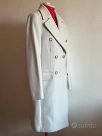 Cappotto lungo doppiopetto color ghiaccio in misto lana, taglia 46, Mango