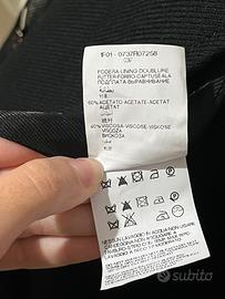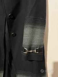 Colore nero con dettaglio sfumato grigio su maniche e fondo, bottoni frontali e fibbie decorative ai polsini.