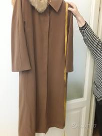 Cappotto in lana con il 20% in Kashmir, lungo cm.130, collo in pelliccia ecologica estraibile, colore cammello, con cinta, di Luisa Spagnoli, misura altezza torace cm.60, fianchi cm 67, ha una vestibilità classica dalla tg 44 alla tg.48. mai usato