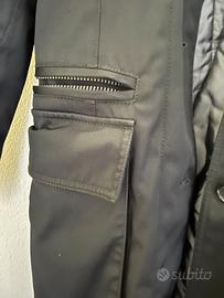 Modello lungo con chiusura a bottoni e zip decorative, dotato di ampie tasche frontali con patta.