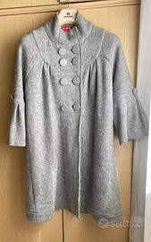 Cappotto Doppiopetto Grigio Donna Derhy 100% Lana, con maniche svasate molto particolare.