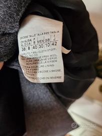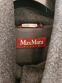 Cappotto grigio Max Mara Studio in lana, taglia 42, con colletto asimmetrico e bottoni nascosti. Vestibilità morbida, taglio trapezio lungo