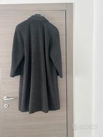 Cappotto grigio scuro spigato , in pura lana vergine 100% a lisca di pesce , ha due tasche laterali , foderato . Lunghezza 106 , ascella ad ascella 56 cm. manica alla rglan taglia 50 , anche 52