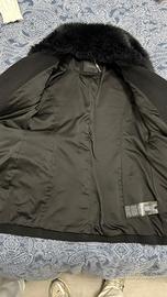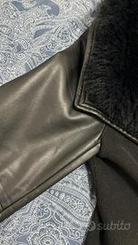 Cappotto nero della Guess taglia M con collo in pelliccia e maniche in pelle