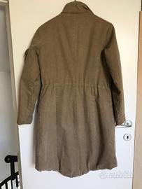 originalissimo cappotto imbottito stile "cacciatore" color marrone chiaro, con coulisse in vita che permette di arricciarlo e parte posteriore più lunga taglia media