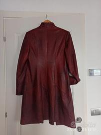 vendo un bel cappotto in eco pelle di alta qualità, color bordeaux, modello classico elegante, per primavera-autunno. taglia 46-48, zip davanti, zip sui polsi e un zip spacco dietro regolabili.