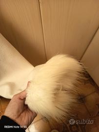 Splendido cappotto color crema/avorio, perfetto per la stagione fredda. Il capo è impreziosito da un morbidissimo collo e polsini in eco-pelliccia tono su tono che lo rendono super elegante e chic. Taglio classico, linea pulita e chiusura con bottone centrale. Ottimo stato, pari al nuovo."